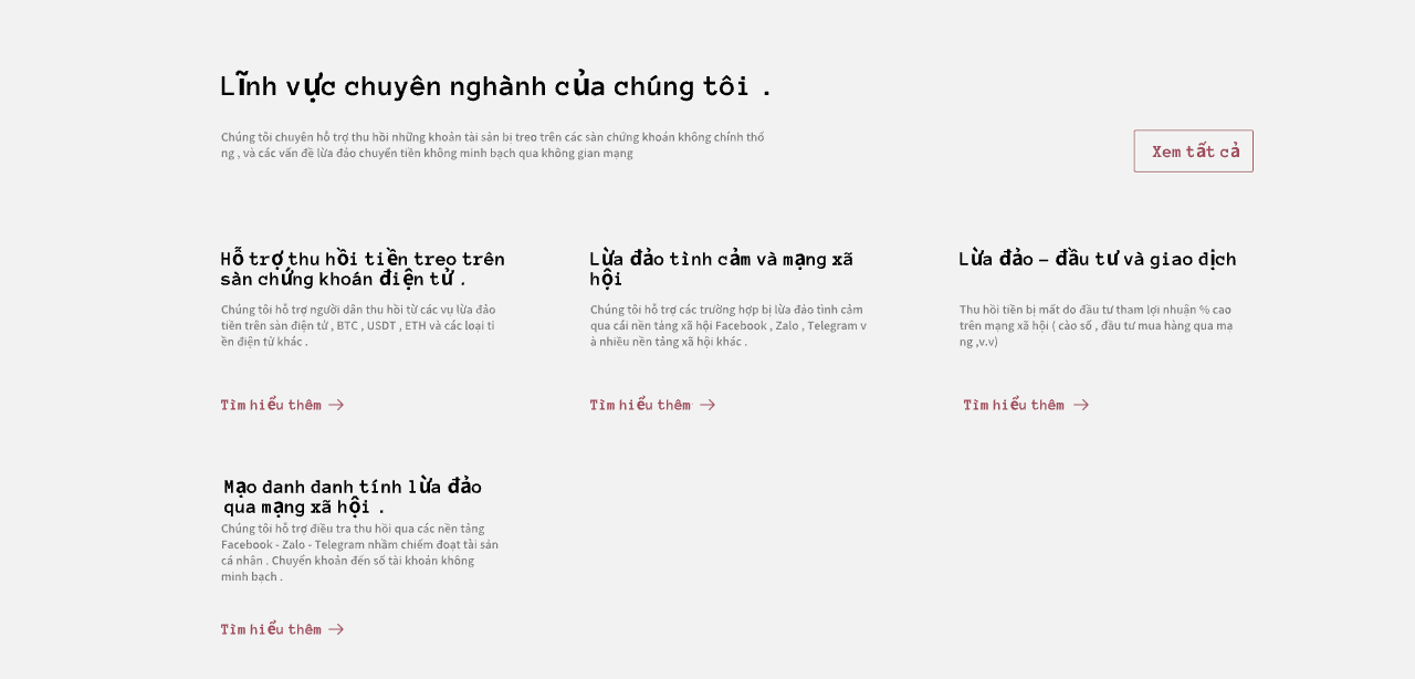 Chúng tôi là chuyên gia trong việc xử lý các quy trình phục hồi phức tạp, cung cấp hỗ trợ đáng tin cậy cho các cá nhân và doanh nghiệp tại Hoa Kỳ và Canada để phục hồi tổn thất. Sự phục hồi tài chính của bạn không chỉ là mục tiêu, mà còn là sứ mệnh của chúng tôi.